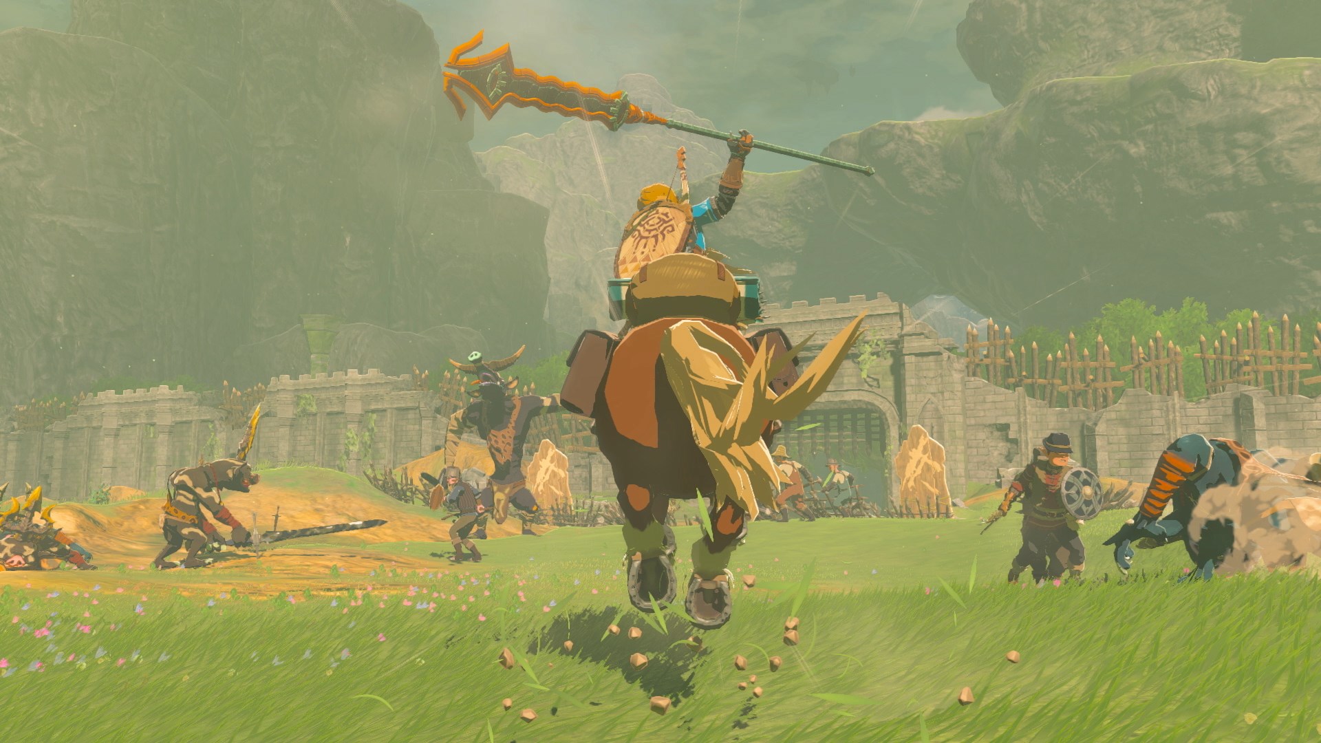 You have a huge map again with a new story. More building mechanics this time, a sky area, an underground area, caves, shrines, camps to conquer, stables, and stores. You have four main dungeons, as usual in Zelda games. All have unique needed companions to complete and once completed you keep the companion avatars to help you on your journey.